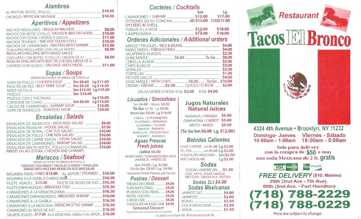 Located in the vibrant heart of Sunset Park, Brooklyn, Tacos El Bronco is a must-visit destination for anyone craving authentic Mexican cuisine. With a cozy and inviting atmosphere, this local gem perfectly captures the essence of Mexico, making you feel right at home as you dive into a myriad of flavors.